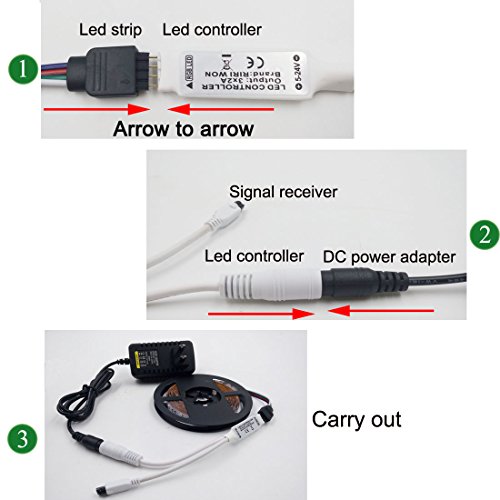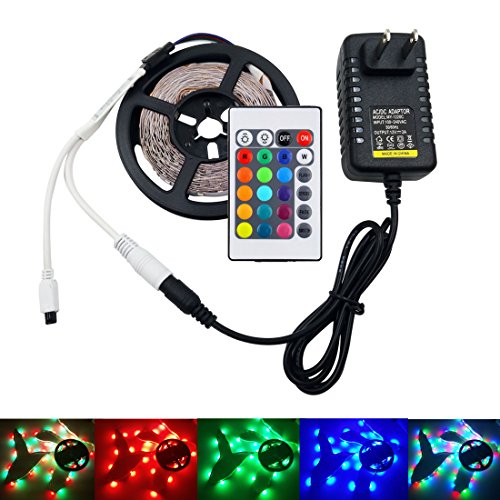 - RGB LED Light Strip kits include 5m 16.4 ft RGB LED Strip Lights+1pcs 24Keys IR Remote Controller+Signal receiver+1pcs 12V Power Adapter,No more accessories are required.