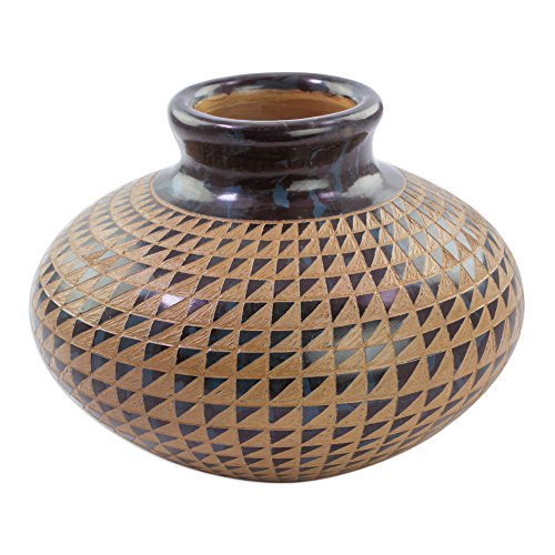 NOVICA Decorative Ceramic Vase, Multicolor, 'Triangles In Symmetry'