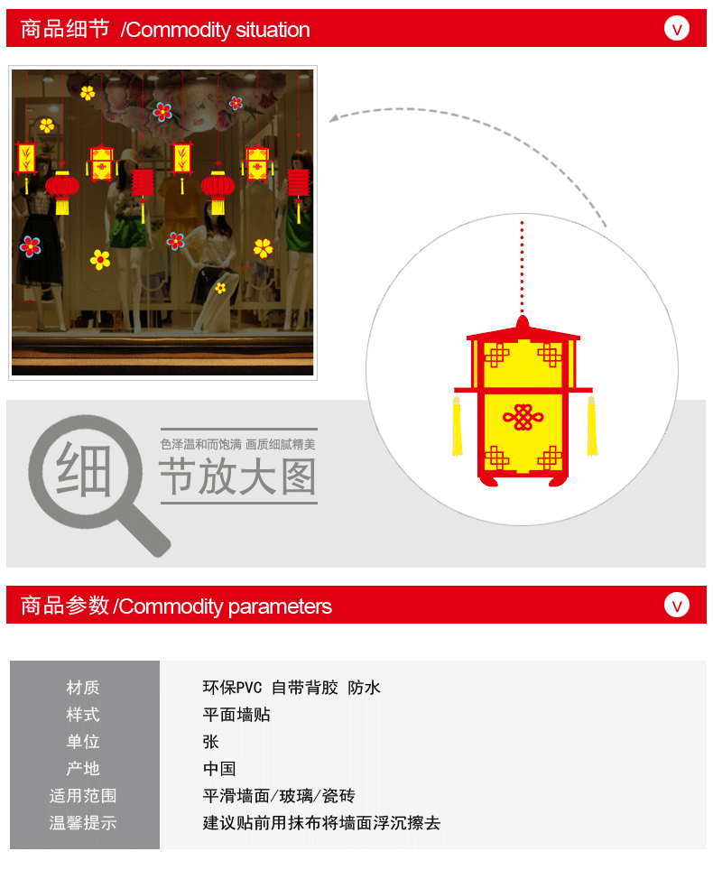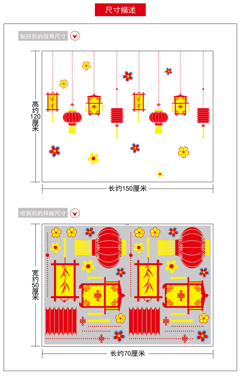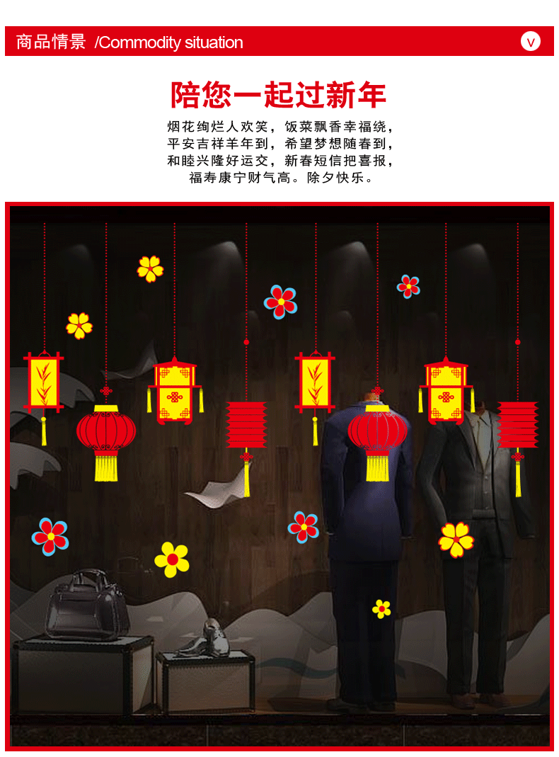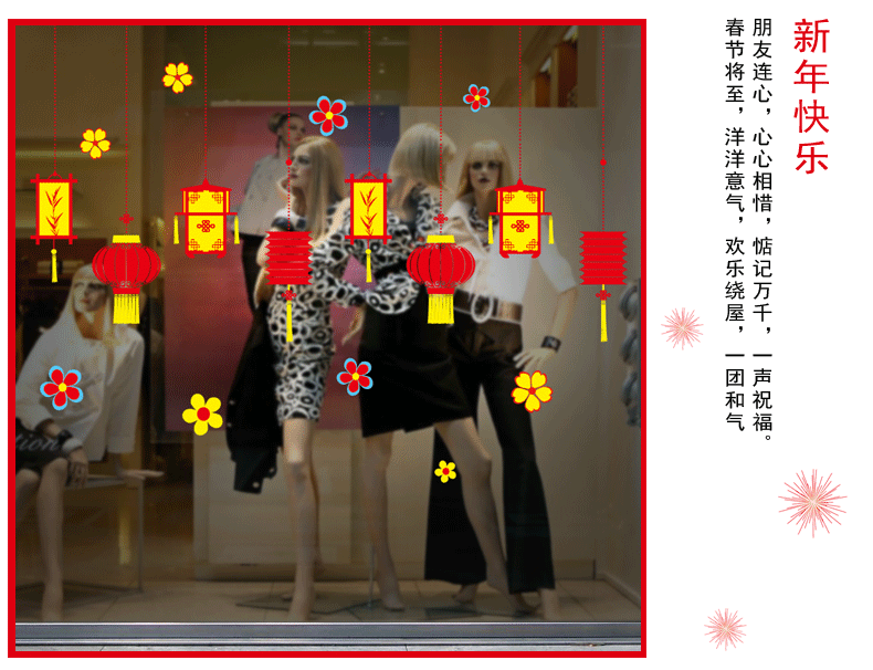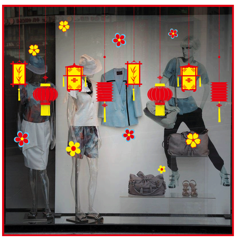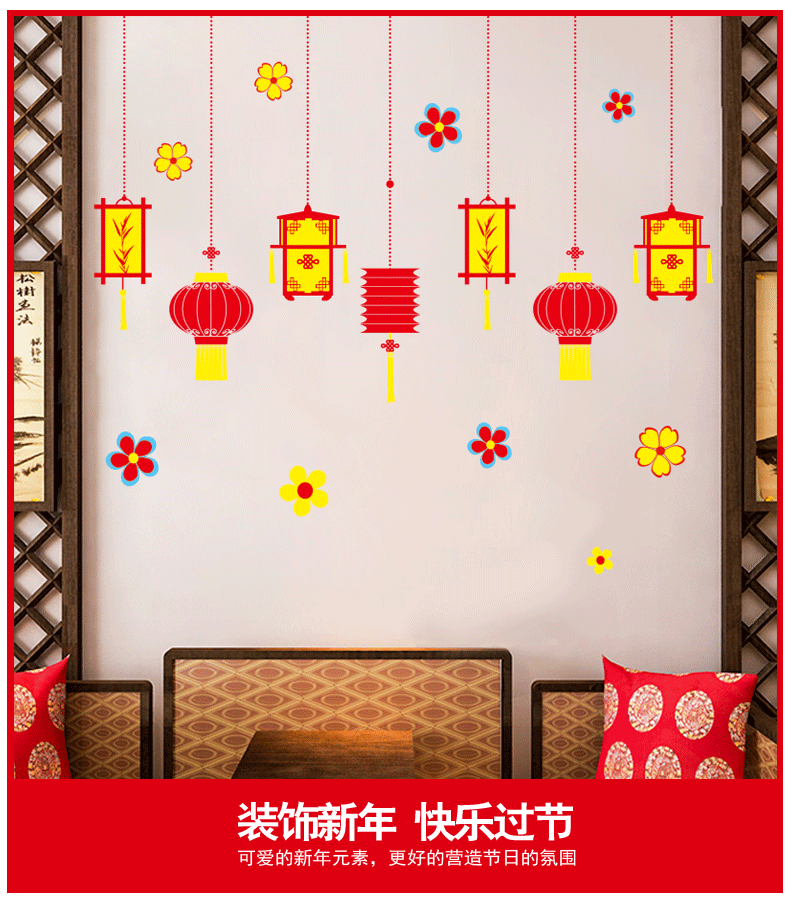 新春元旦橱窗玻璃贴纸墙贴灯笼喜庆过年节日布置装饰品