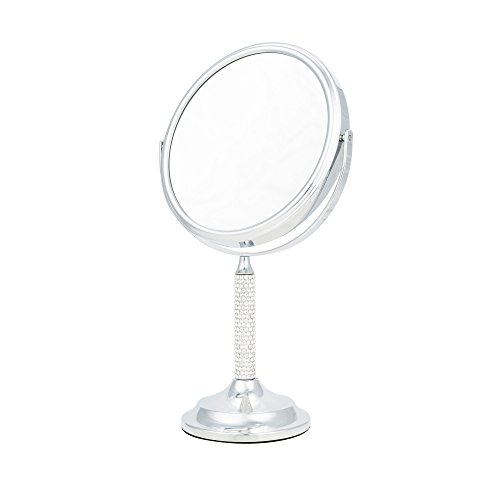 Danielle Creations Double-Sided Chrome Vanity Mirror with Crystal Stem, 5X Magnification