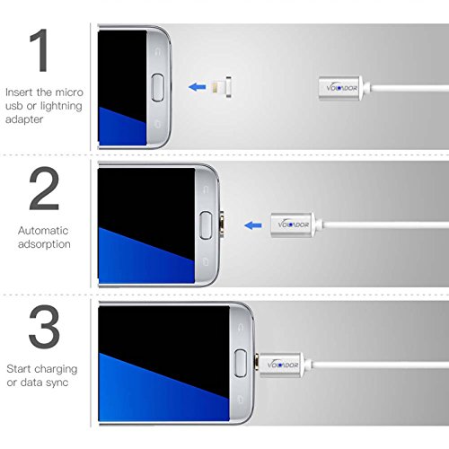Magnetic Android Charging Cable, Volador Micro USB High Speed Charge Cable USB Sync Cable with Metal Plug and Magnetic Design for Android Cellphones
