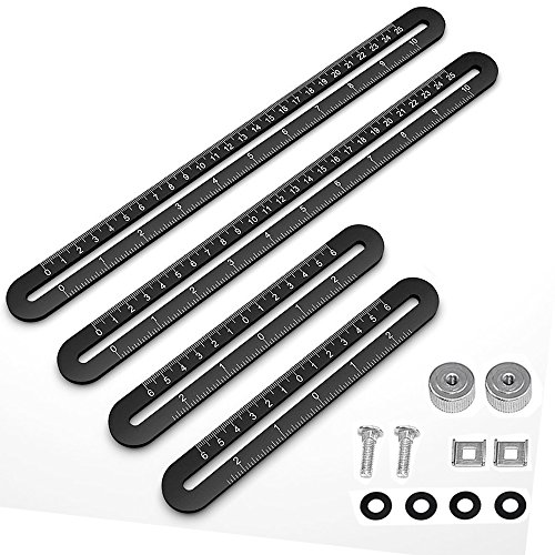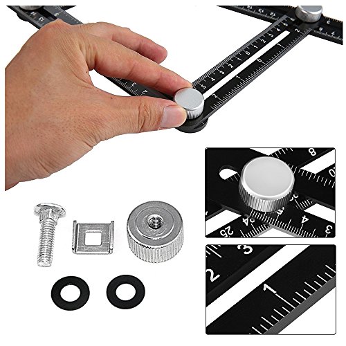 - Durable Aluminum Alloy Material: New upgrade, Four-sided rulers and four knobs are all made of aluminum alloy which makes measurements more steady and accurate. It’s time to say Goodbye to your old plywood template tool. It is no longer a fragile item.