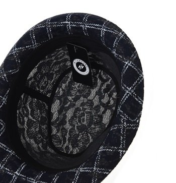 Upturn cuban style, Narrow brim, short teardrop-shaped crown Trendy lattice check pattern trilby for Spring/Summer season Nicely finished / Light weight fabric