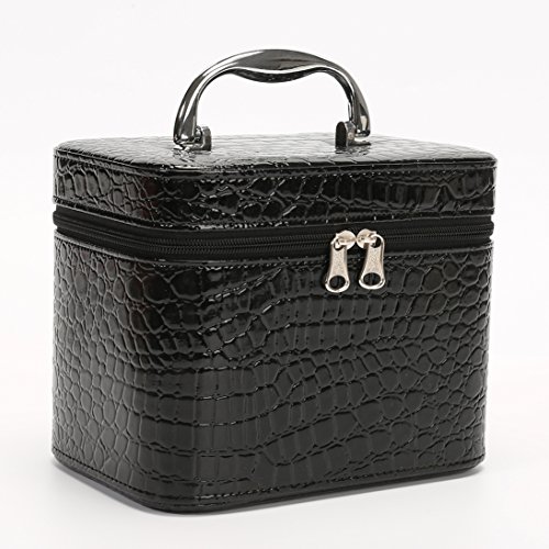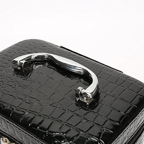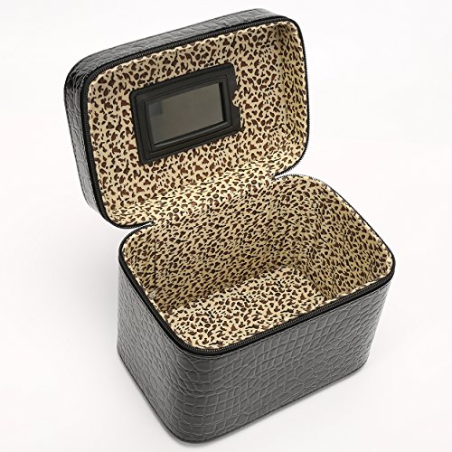 HOYOFO 2-Piece Stone Texture Cosmetic Train Case Set Makeup Bags with Mirror,Black