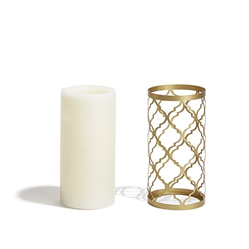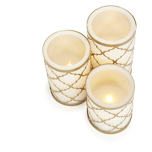 -. Binding : Kitchen -. Brand : LampLust -. Feature : Description: Set of 3 bronze wooden lattice design lanterns with 1 ivory resin candle in each. Each candle contains 1 bright warm white LED. / Color Temperature: Each ivory resin candle has a color temperature of 2200 Kelvin. Each candle is water resistant and could be used for indoor or outdoor application. Batteries: 3 AAA Batteries per Lantern Included. LED technology allows these lanterns to remain cool to touch even after hours of use. / Remote: 8-function remote control options include, ON/OFF, 4/8 Hour Timer, Steady ON/Natural Glow, Brighter/Dimmer -. Label : LampLust -. Manufacturer : LampLust -. ProductGroup : Home -. ProductTypeName : HOME -. Publisher : LampLust -. Studio : LampLust -. Title : Set of 3 Flameless Ivory Candles and with Brass Holders