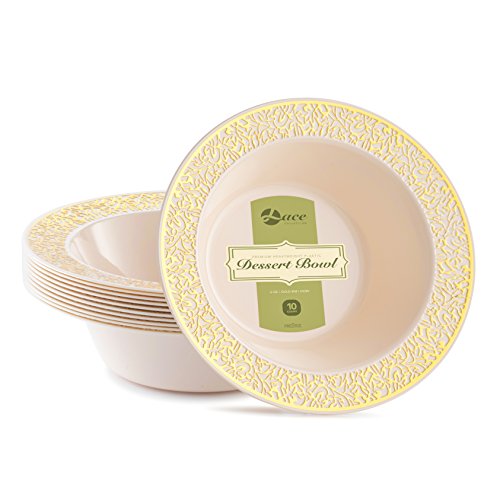 Lace 6 Oz. Dessert Bowl Gold Rim Ivory 40 Pk