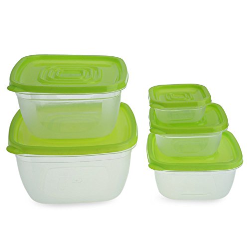 5 in 1 environmental food grade plastic Seal Fresh Keeping Box Fridge Food Container Multi Capacity Lunch Box (Green)