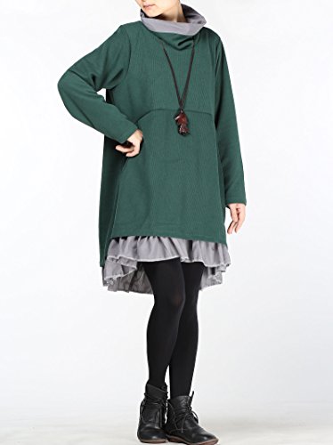 -. Feature : Outer material:90% cotton, 10% other / Turtle neck,contrast two-layers,pleated hi-low hem,A-line,Front two pockets / Very warm winter dress,wear it as long tops for tall people,as dress for short one,But it to match our cotton coat,warm and funny / Size information: PLS read the size details on Product Description, not the Amazon Size Chart beside the "size option" / Hand Wash