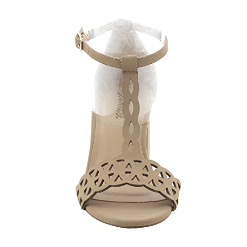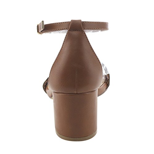 BONNIBEL FJ60 Women's Block Heel Cut Out Ankle Strap Dress Sandals