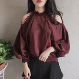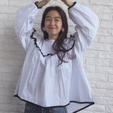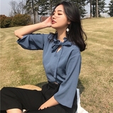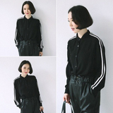 Korean fan of a paragraph pockets big sleeves hitcolor retro shirt Top