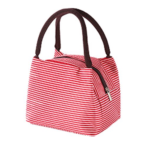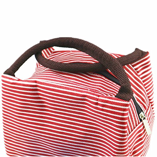 Waterproof Useful Cute stripe Lunch Bag Tote Bag Container Picnic Box (red)