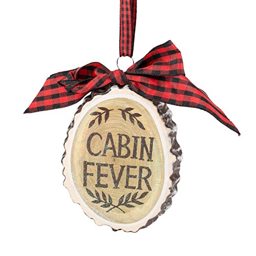 Cabin Fever Plaid Wood Slice Look 5 Inch Glass Hanging Christmas Tree Ornament