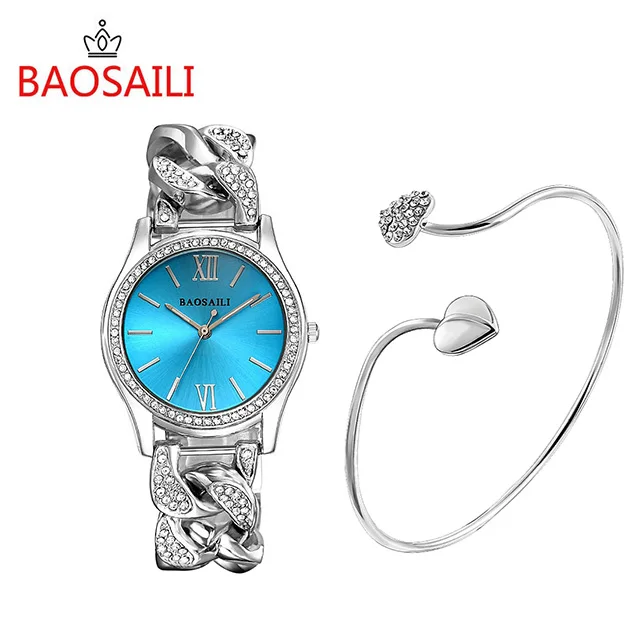 | [해외] BAOSAILI BSL915 패션 여성 팔찌 시계 다이얼 시계 라인 석 시계 여성 Relojes Mujer 여성 드레스 시계 |