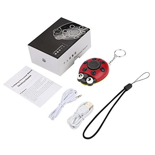 -. Feature : [portability]- The Beatles shape is very cute,more difficult to be found.The Alarm is very compact and light,easy to carry,weighing 2 ounce(0.06kg). / [Battery Life]- 60 minutes total Alarm use or about 4 hours total continuous playback of music(100% charge).Built in 300mA USB rechargeable lithium battery and no extra money for replaceable batteries. / [Deterrent Effect]- When in danger all you need to do is simply pull the pin and the alarm goes off with a 130Db female voice high pitch cries out "Help! Help! (siren sound) Help Help!",as well as red and blue flashing lights(like police light). / [Versatility]- Not just a personal alarm keychain, it's also a SOS/a Flashlight/a floodlight/Bags or a 3.5mm Audio connector Speaker.Ideal gift for joggers,elderly,night owls,kids,music lovers and women or girls that often commute or work by themselves,great for Self-defense Alarm. / [Package]- 1* Personal Alarm,1 * Alarm Pin,1* USB Cable,1* Black Straps,1* 3.5mm Audio Cable,1* Instruction Manual and 1* Box.