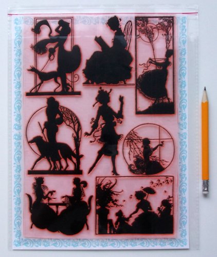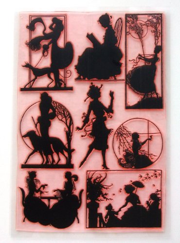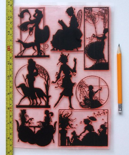 -. Title : Girl Silhouettes Art Nouveau (7"x10") Clear Stamps Large Sheet / Retro, Vintage, Cute Girl