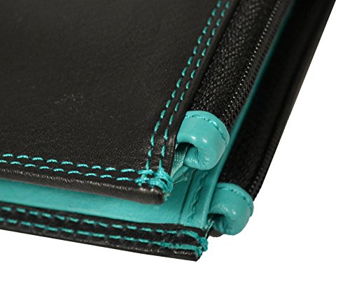 - Feature : A Soft Leather Wallet/ Purse from the popular Visconti brand / Color: Black/ Aqua, or Black/ Red Dimensions: 3.54" x 7" / 17 credit card slots, 4 compartment for notes / 1 window ID, 2 zippered compartments / Contrast and Double Stitching