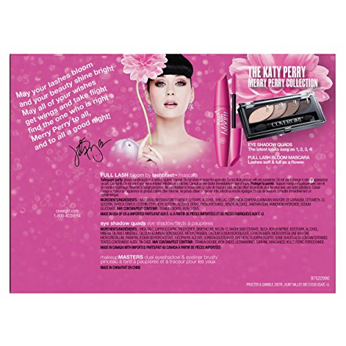 -. Binding : Health and Beauty -. Brand : COVERGIRL -. EAN : 0022700151394 -. Feature : Full Lash Bloom Mascara gives you touchable soft, full lashes while eye shadow quads are enriched with skin conditioners for a smooth, even application. / Go from subtle to dramatic in seconds with eye shadow quads' buildable rich color pigment; then get volume that stays soft to the touch all day with Full Lash Bloom mascara; 0.446 Fluid Ounce / Flaunt full separated volume and pure luminous colors that are made to be played with. / Full Lash Bloom has a soft mousse formula with natural beeswax. Pair with eye shadow quads to create a bright, bold, crave able look. / Create volume from root to tip. Bendable eye shadow quads; Very Black/Notice Me Nudes -. Label : Procter & Gamble - Cosmetics -. Manufacturer : Procter & Gamble - Cosmetics -. NumberOfItems : 1 -. PackageQuantity : 1 -. ProductGroup : Beauty -. ProductTypeName : BEAUTY -. PublicationDate : 2015-10-09 -. Publisher : Procter & Gamble - Cosmetics -. ReleaseDate : 2015-09-28 -. Studio : Procter & Gamble - Cosmetics -. Title : CoverGirl 2 Piece Holiday Eye Regimen Gift Set (Very Black Plus Notice Me Nudes) -. UPC : 022700151394