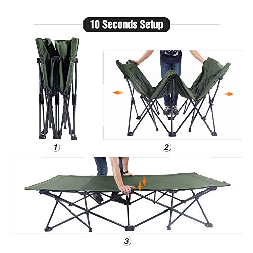 ★ HIGH QUALITY: Enjoy a good sleeping time with Redcamp foldable and portable camping cot for adults. Well made with ergonomics design and army military cot standard, 600D sturdy and breathable polyester Oxford, 19/16mm steel tube,10 support legs in heavy-duty triangle frame. Patented G-STA lock mechnism at side joint.
