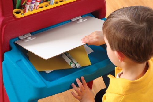 - Feature : Dry erase board includes clip to hang paper for other projects / Desk with workspace for creative projects / Storage area above desk holds art supplies (not included) for easy access / Stable base ensures stability / Folds for easy storage