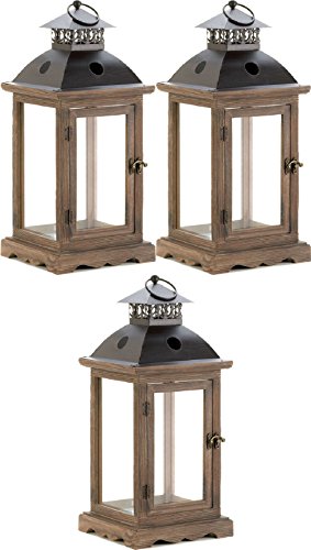 -. Title : 3 Rustic Large Brown Wood Metal 18” Tall Candle Holder Lantern Terrace Outdoor