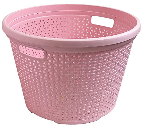 Wee's Beyond W08-1095-PS.Pnk Rattan Round Laundry Basket 30 Lt, Pastel Pink