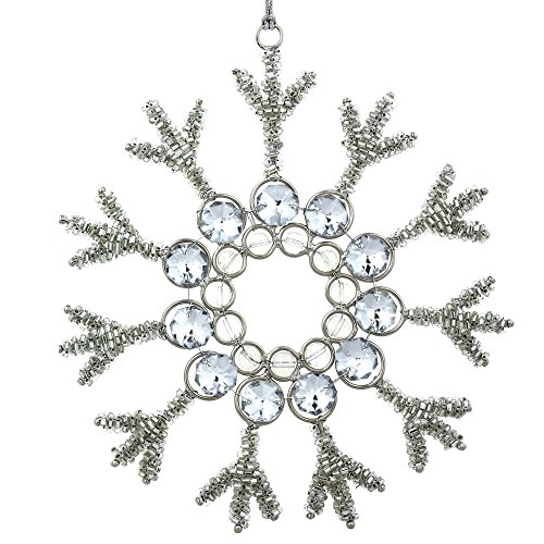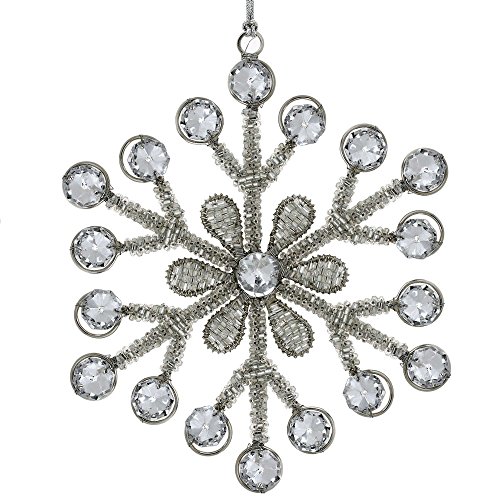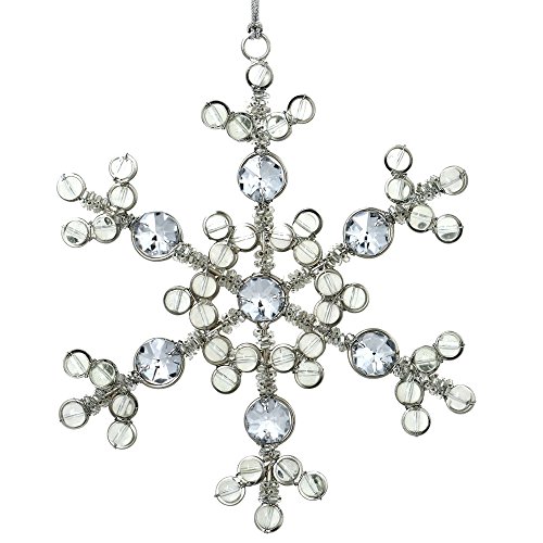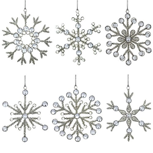 Set of 6 Handmade Large Snowflake Iron and Glass Pendant Christmas Ornaments Tree, 9 Inches
