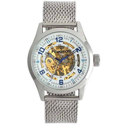 -. Title : Peugeot Men's 1050S Mechanical Skeleton Stainless Steel Analog Hand-Wind Silver-Tone Watch