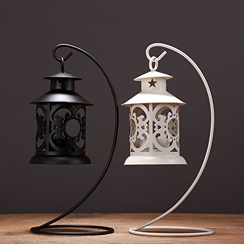 -. Feature : NOSTALGIA CONSTRUCTIONS Vintage iron candle lantern with an exotic Moroccan style ,white and black / HOME DECORATIONS The classic European style hanging design with a detachable elegant spiral stand makes it a perfect home décor for your desks and patio both indoors and outdoors. / PERFECT GIFTS The floral pattern and the lantern holder creates an exotic global vibe and boosts your festive spirit, The hanging lantern with spiral stand and the easy to use candle holders makes it a perfect safe gift for housewarmings, weddings or parties.