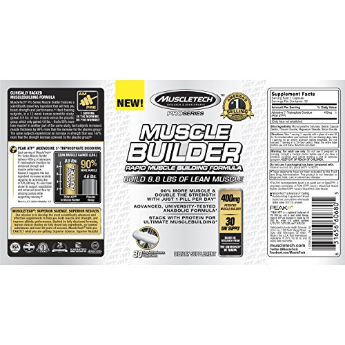 MuscleTech Muscle Builder, Muscle Building, Strength Boosting Pill with PEAK ATP, 30 Rapid Release Caps