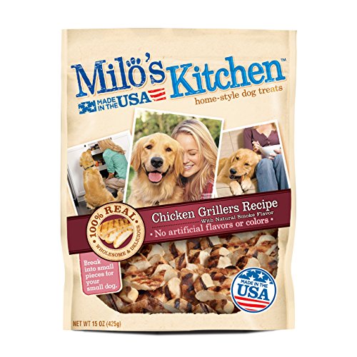Contains one 15-Ounce bag of Milo's Kitchen chicken jerky strips dog treats