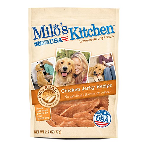 Milo's Kitchen Chicken Jerky Strips are a great tasting, home-style recipe made with real chicken for the best mouthwatering jerky treat. Show them love with a deliciously wholesome snack that's made to perfection for an authentic chicken taste without artificial flavors or colors – made right here in the USA.Feature