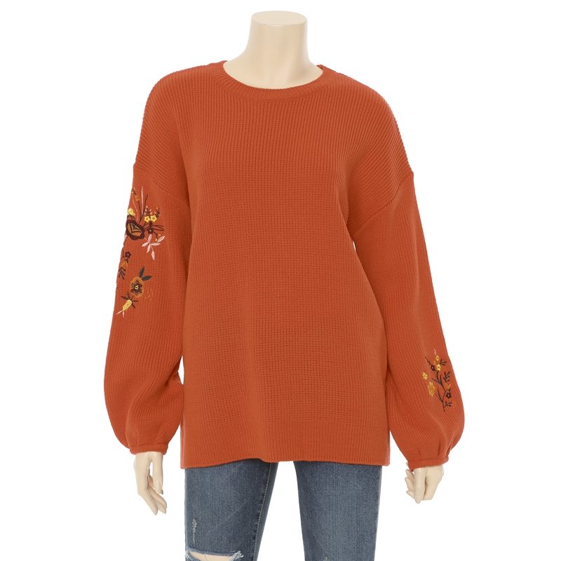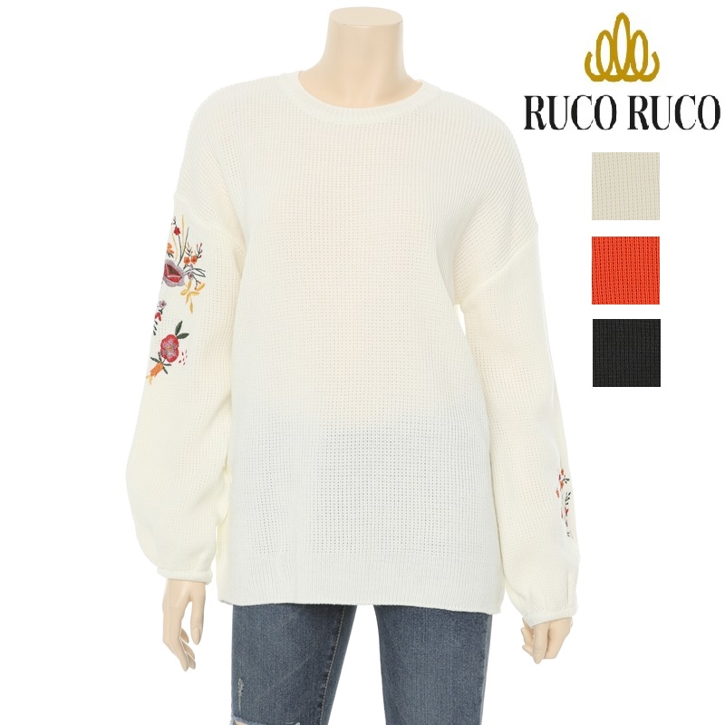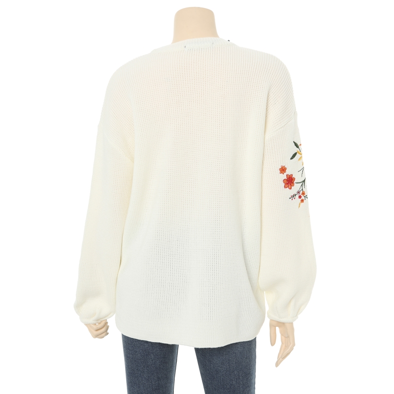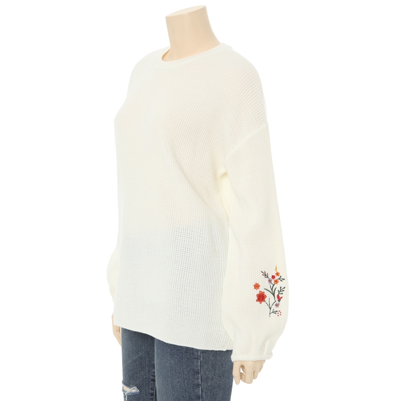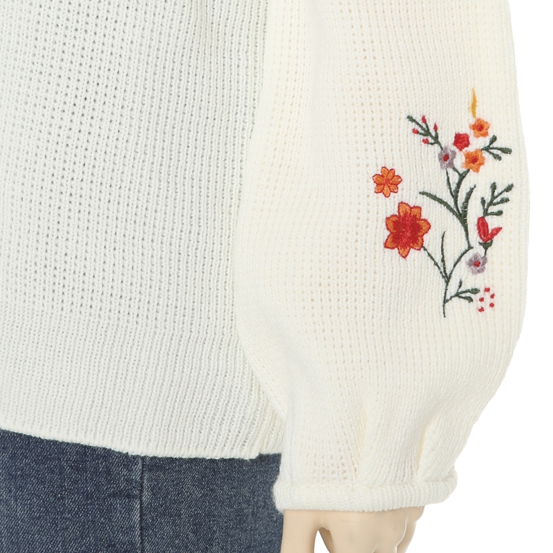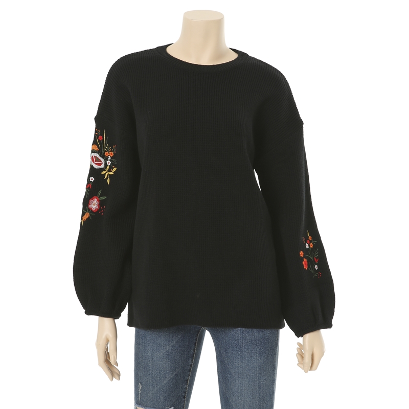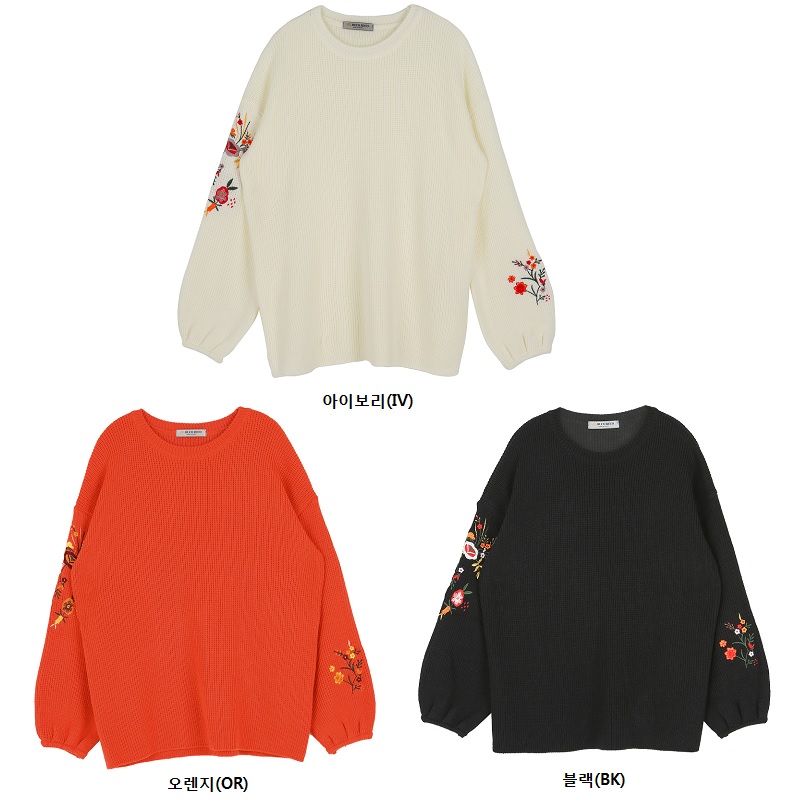 전체적으로 루즈한핏에 비숍소매,소매라인의 꽃자수 포인트로 유니크한 느낌의 스웨터입니다.