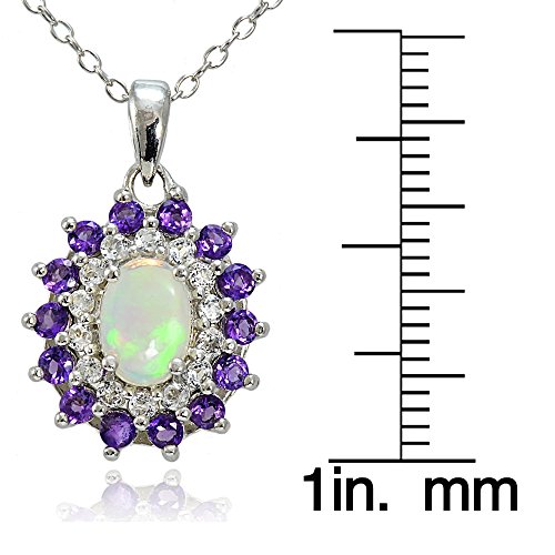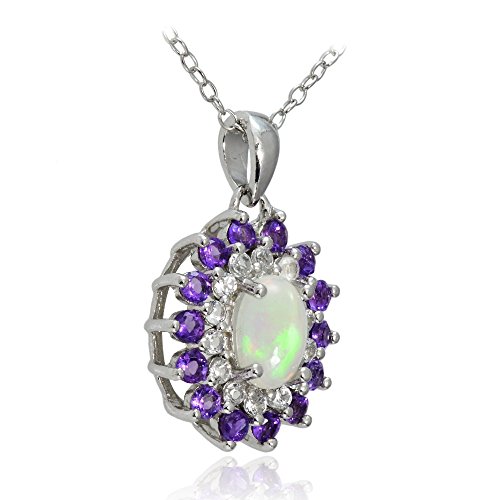 Sterling Silver Ethiopian Opal, African Amethyst & White Topaz Oval Flower Necklace