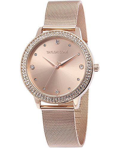 -. Title : Taylor Cole TC071 Ladies Quartz Rose Golden Stainless Steel Band Wrist Watch