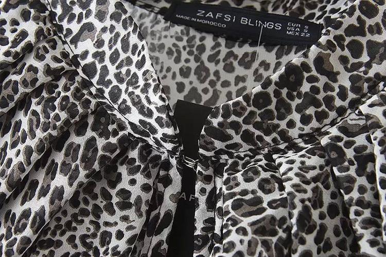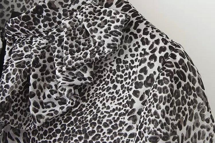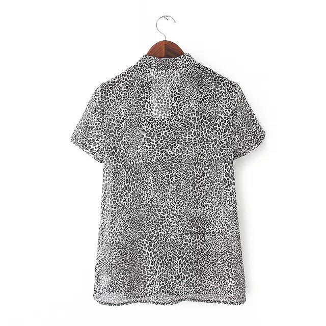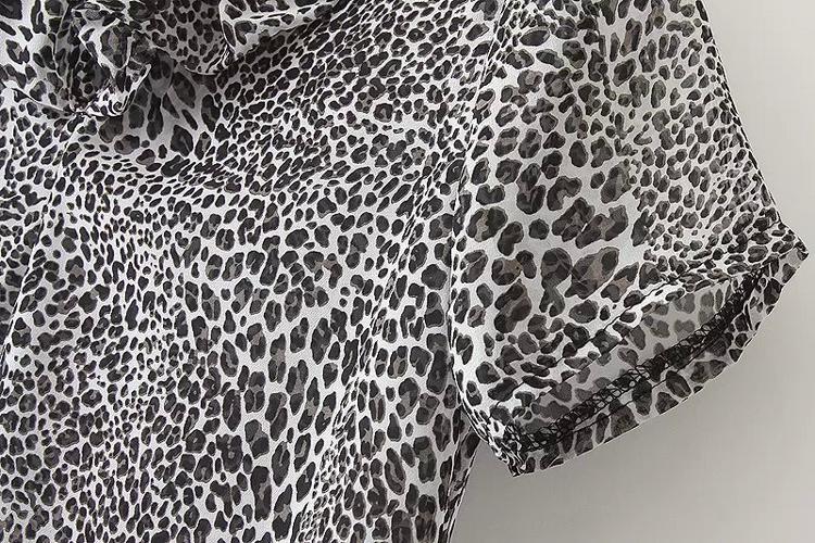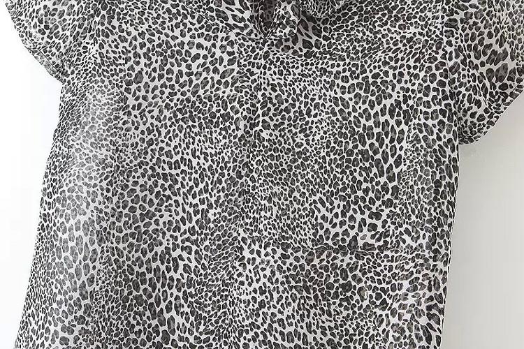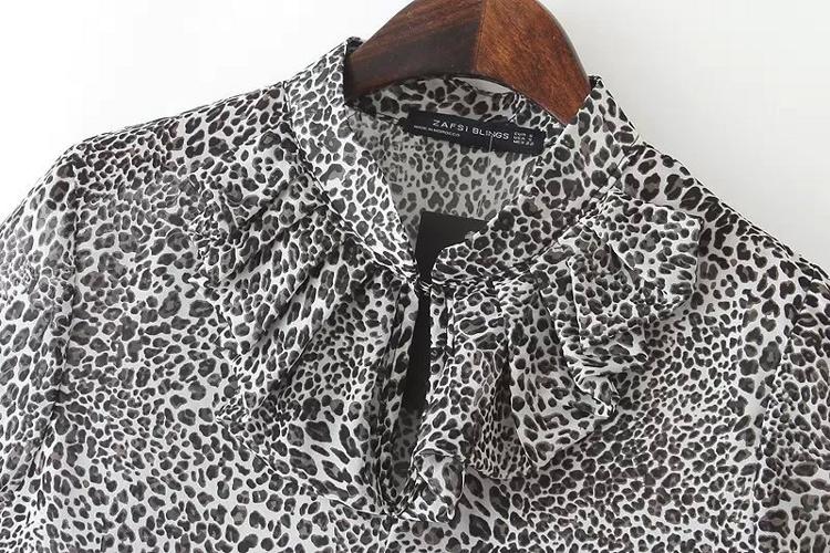 New Spring Blusas Femininas Europe Leopard Short Sleeve Bow Collar Shirt Women Blouses Slim Casual Formal Pullover Blouse