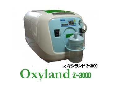 산소 발생기(《오키시란도》Z-3000)의 주요 사양: 산소 농도:약90%~35%/유량:매분2.5~8리터/크기:W340×D440×H290(mm)/전원:AC100V/소비전력:230W (50Hz/60Hz)/발생 방식:PSA방식/운전음:약45db/중량:약10kg/타이머:10 분단위로 60분까지 타이머 설정 가능.연속 운전도 가능. ※부속품:게《―라》,헤드세트고, 가습보틀,실리콘 튜브,튜브(약2m)고, 취급 설명서,보증서(취급 설명서에 첨부).