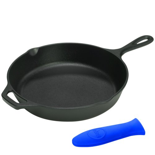 -. Title : Lodge Logic 13.25 Cast Iron Skillet with Helper Handle and Free Blue Silicone Handle Holder