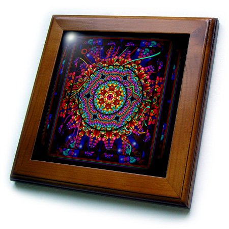 3dRose ft_24832_1 Mandala 4 Mandala India Buddhism Hinduism Psychedellic New Age Harmony Balance Meditation-Framed Tile, 8 by 8-Inch