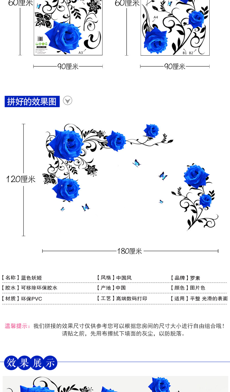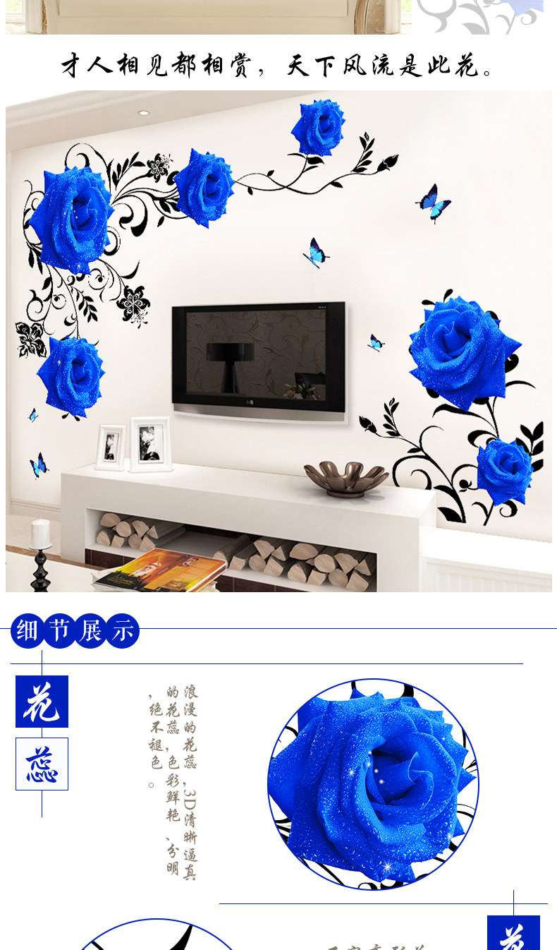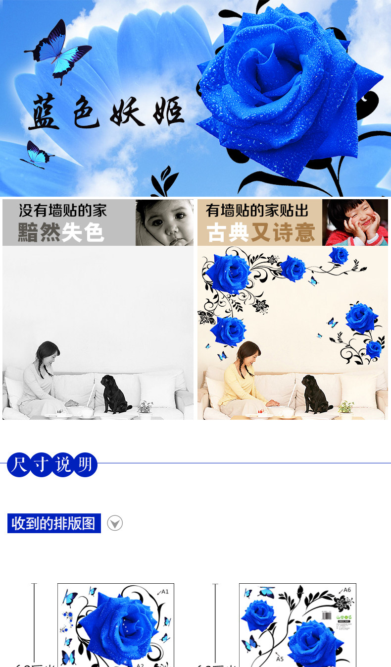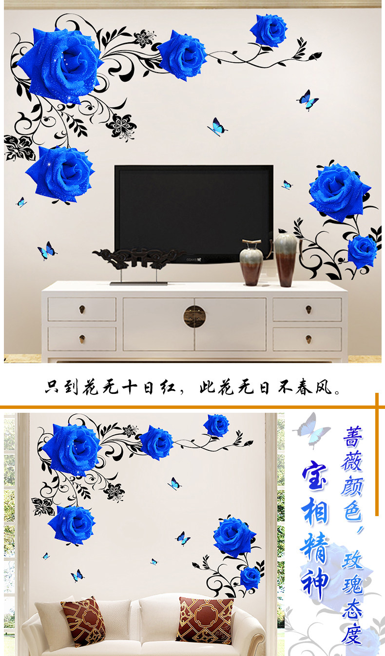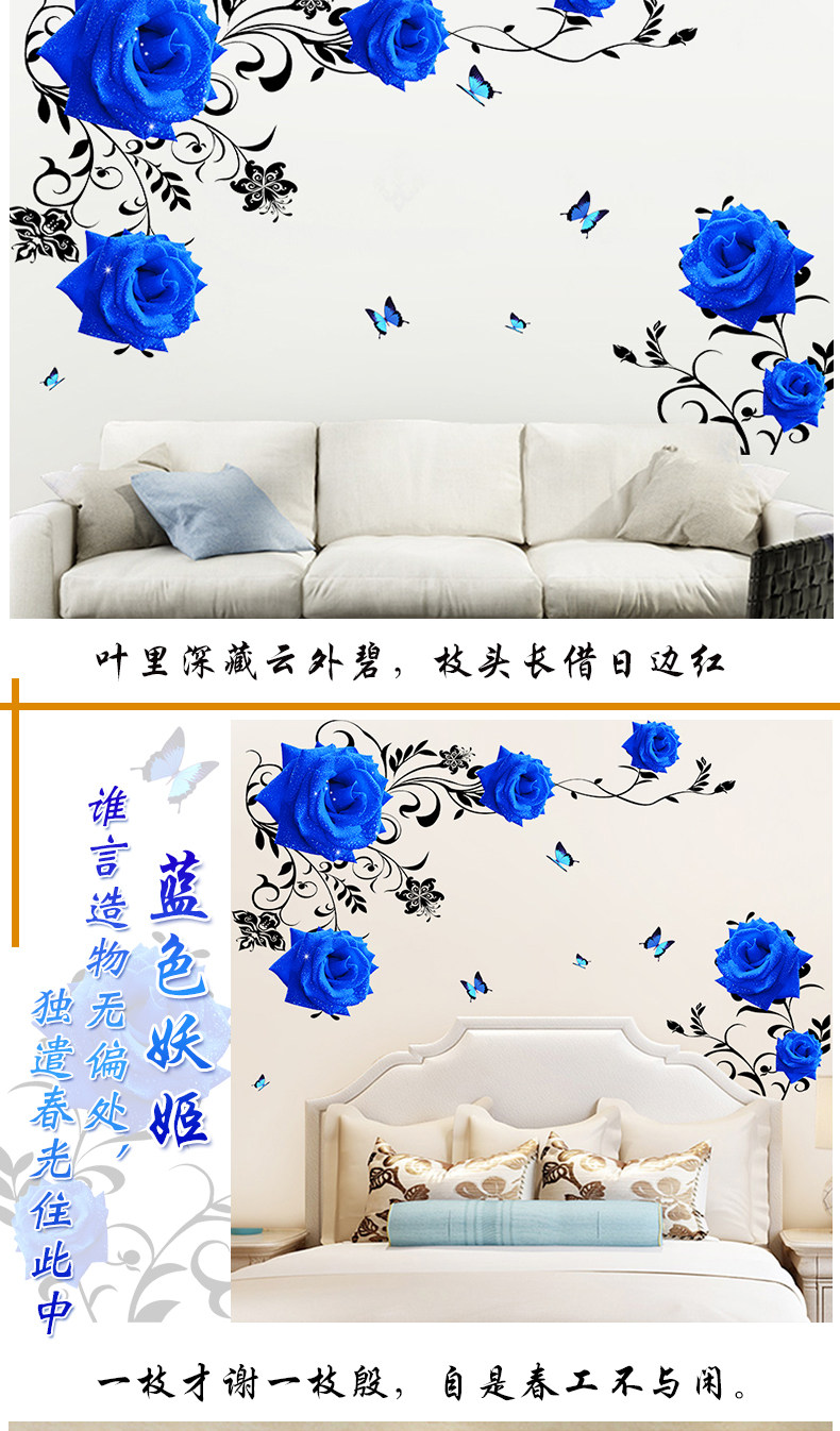 蓝色妖姬墙纸自粘墙贴画创意卧室房间温馨客厅背景墙壁装饰品贴纸