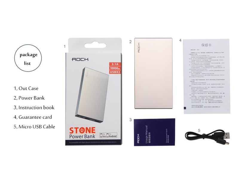 Package Included: 1* Rock Stone Power Bank
