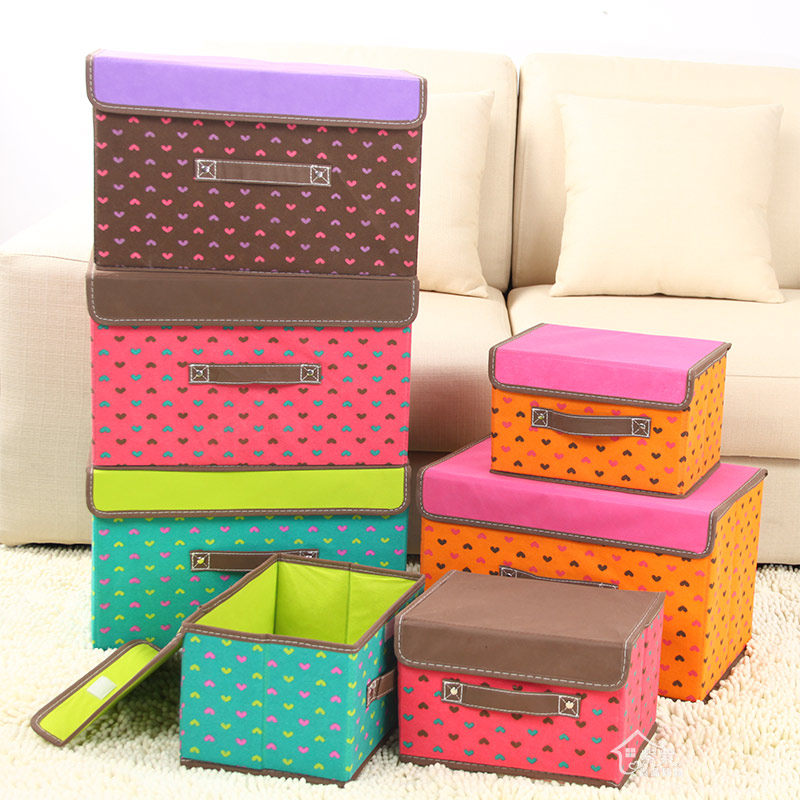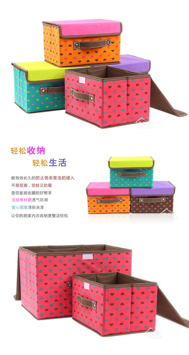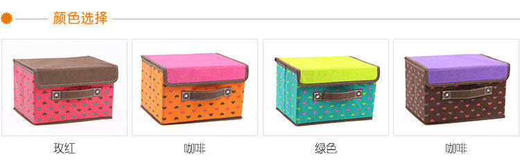 A very practical and beautiful storage box, colorful bright colors, simple shapes, box body romantic love stamp, make your home full of warmth and good atmosphere, stamped design better dust, woven breathable material proof, in front of the handle can be easily moved, home essential!
