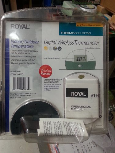 -. Brand : Royal -. Color : White -. Feature : New item -. Label : Royal -. Manufacturer : Royal -. Model : WS10 -. MPN : Roy-4141 -. PartNumber : Roy-4141 -. ProductGroup : Home -. ProductTypeName : KITCHEN -. Publisher : Royal -. Studio : Royal -. Title : Royal ThermoSolutions Digital Wireless Thermometer - Desktop Weather Station WS10