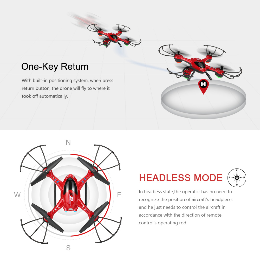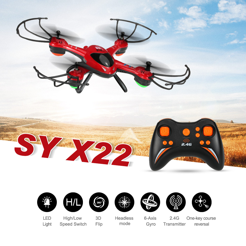 SY X22 is a fantastic full functional RC quadcopter with delicate fuselage design and high quality painting. 3D flip, headless mode and one-key return function feature great flying fun and 6-axis gyro for high stability. The protective propeller guard provides safe and secured flight, make it perfect to fly both indoor and outdoor.