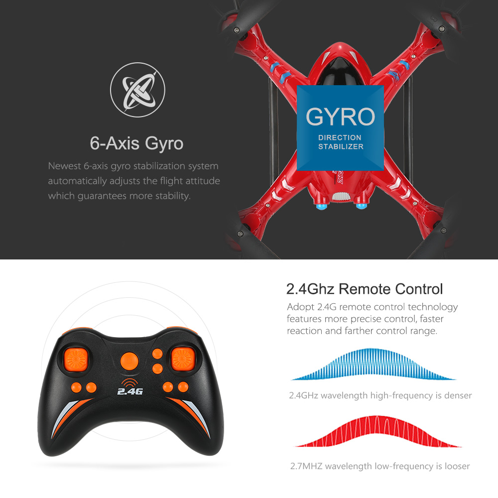 Newest 6-Axis Gyro control system ensures stable flight and easy operation.