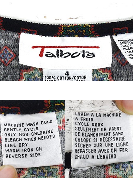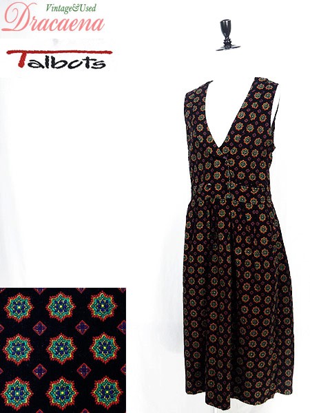 Ladies ブランドTalbots タルボット カラー黒ベース メール便不可 コンディション★★★ 素材コットン 表記サイズ4 スタッフコメント裏地無し。 実寸サイズ 着丈 113 cm 身幅 43 cm 肩幅 34 cm ウエスト 31 インチ( 80 cm) ※ウエスト・ヒップ以外は平置き採寸