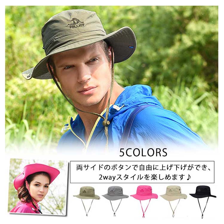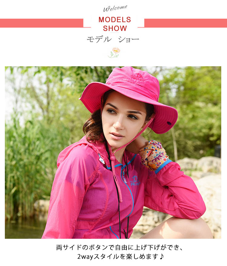 | 両サイドのボタンで自由に上げ下げができ、2wayスタイルを楽しめます♪つばを上げてウエスタン風のワイルドスタイルもかっこいい!約7.5cmのつばで紫外線対策にもピッタリ!ドローコードが付いているので風もしっかりと対策。春夏秋冬、季節を選ばず使える定番アイテムです!! | |