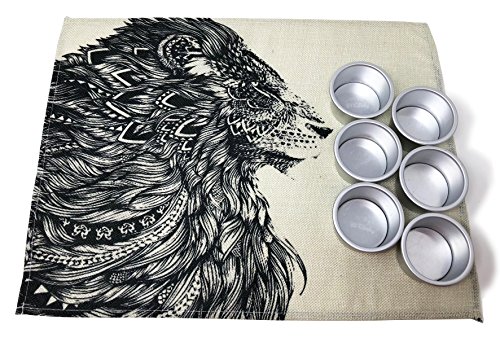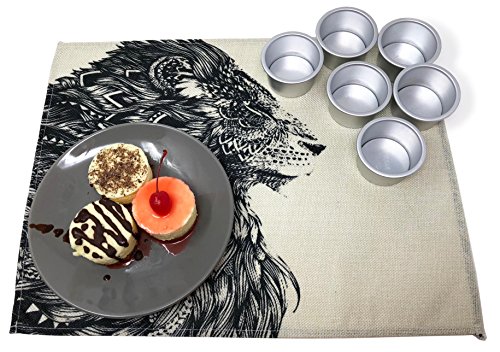 Set of 6 Aluminum Popover 2.5 Mini Cake Molds With Lion Placemat And Removable Bottom