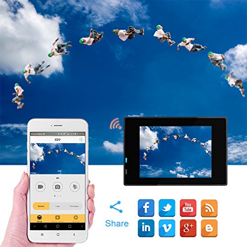 - Built-in WIFI&APP: WIFI connection is compatible with Android and IOS devices, 25 meters is the best effective distance. Please install “XDV” APP program before using WIFI function. And you can share the moment to your social media at any time. Rugged built, shockproof and waterproof to 30M,dust-proof, anti-high and low temperature (-10℃-55℃)