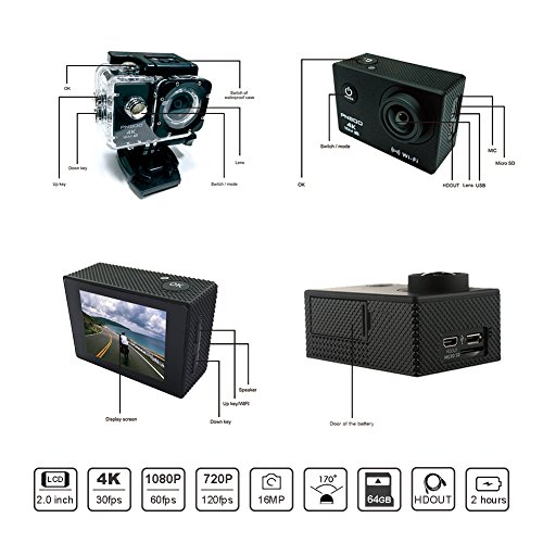 PNBOO PA-30 170 Degree Wide-Angle 4K 30fps 16MP Waterproof Action Camera with 2.0 Inch HD Ultra Display with Sony Sensor and WIFI (Black)
