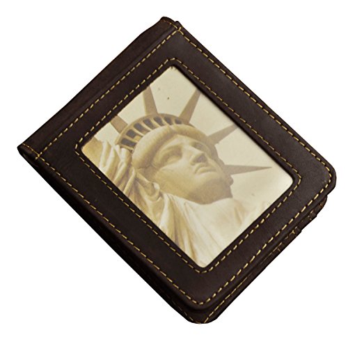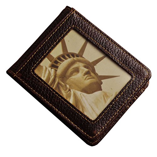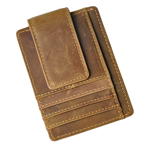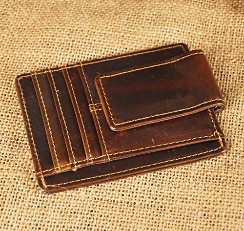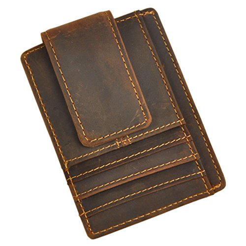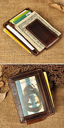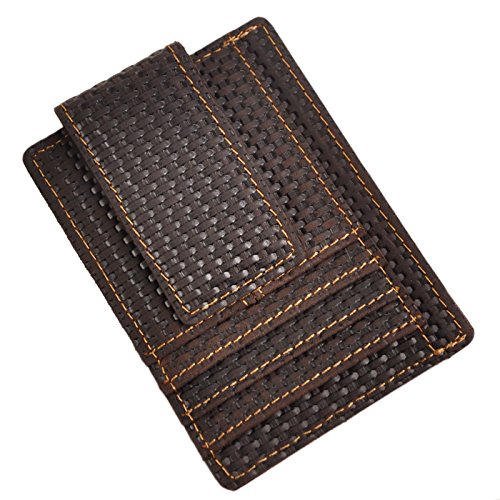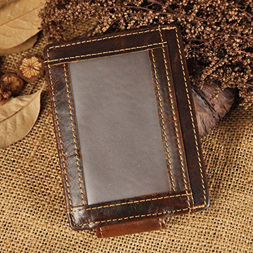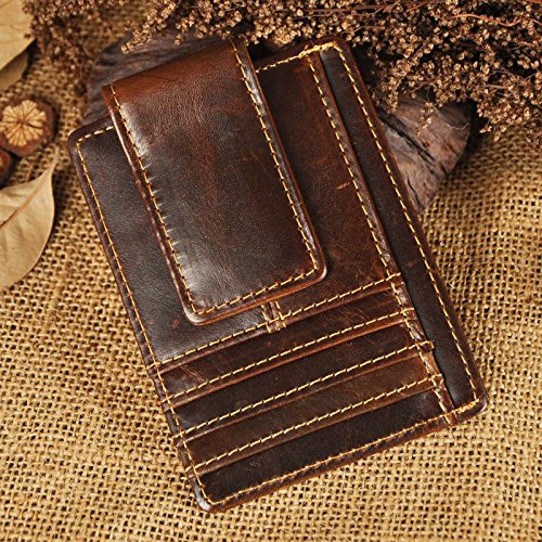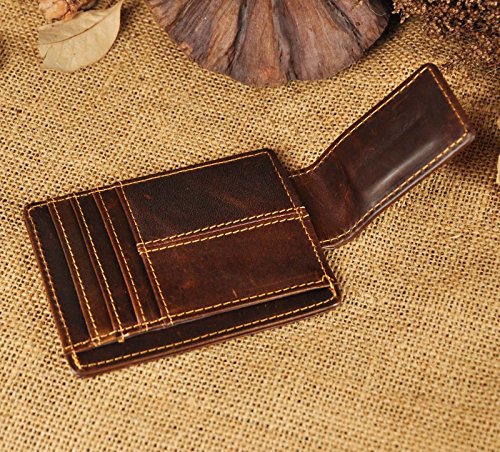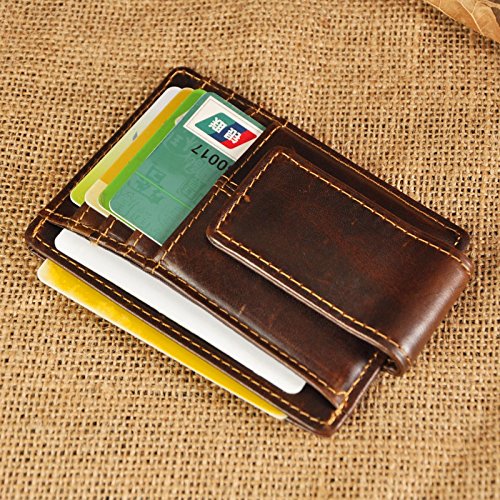 Le'aokuu Genuine Leather Magnet Money Clip Credit Case Case Holder Slim Wallet (Coffee)